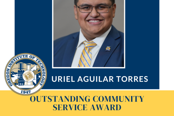 Oregon Tech awarded Uriel Aguila Torres the 2025 Outstanding Community Service Award for his outstanding contributions to his community and service to others.